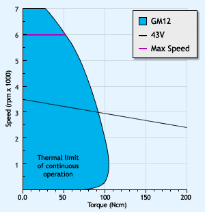 All motor (tacho/amplifier) performance data has been obtained at 22oC. Thermal limits for continuous operation were achieved with a 200 C 400 X 10mm aluminium heatsink fitted.