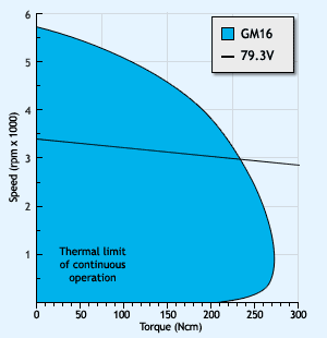 All motor (tacho/amplifier) performance data has been obtained at 22oC. Thermal limits for continuous operation were achieved with a 200 C 400 X 10mm aluminium heatsink fitted.