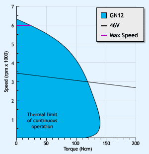 All motor (tacho/amplifier) performance data has been obtained at 22oC. Thermal limits for continuous operation were achieved with a 200 C 400 X 10mm aluminium heatsink fitted.